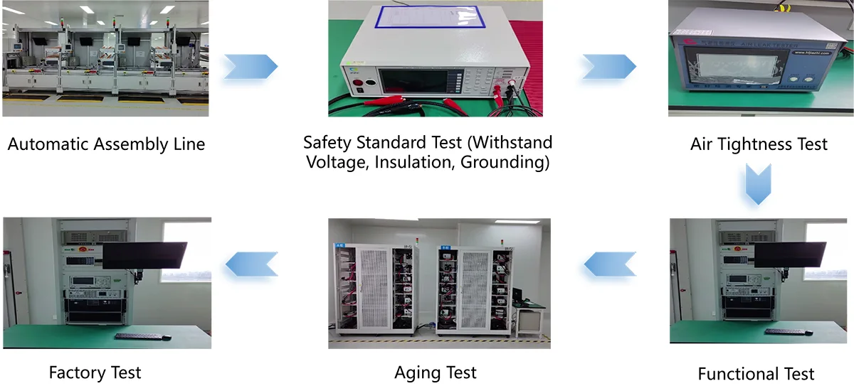 Məhsul xammaldan hazır məhsula qədər tam proses keyfiyyətinə nəzarət etməklə IEC 62368-1 təhlükəsizlik standartlarına və RoHS ekoloji tələblərinə uyğun olaraq Aİ CE sertifikatı, ABŞ FCC sertifikatı, Çin CCC sertifikatı və CB sertifikatından keçmişdir. Zavodda standartlaşdırılmış istehsal xətləri və peşəkar sınaq laboratoriyaları var. Sabit performansı təmin etmək üçün hər bir məhsul fabrikdən çıxmazdan əvvəl 72 saat fasiləsiz yaşlanma testindən, gərginlik müqavimət testindən, yüksək və aşağı temperatur mühit testindən keçir. Müştərilər tərəfindən yerində fabrik yoxlaması və keyfiyyətə nəzarət nümunəsini dəstəkləyərək məhsulun ixtisas sertifikatları və sınaq hesabatları təqdim edin.